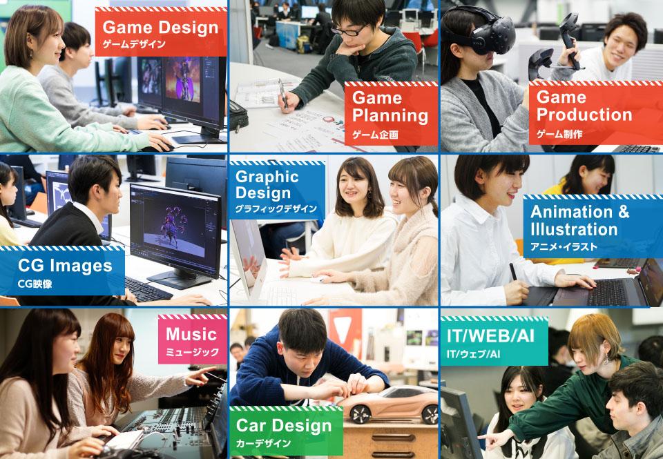 专业设置:IT专业、电子工学专业、游戏、3DCG/动画制作专业、声优、音乐专业、建筑/室内设计等