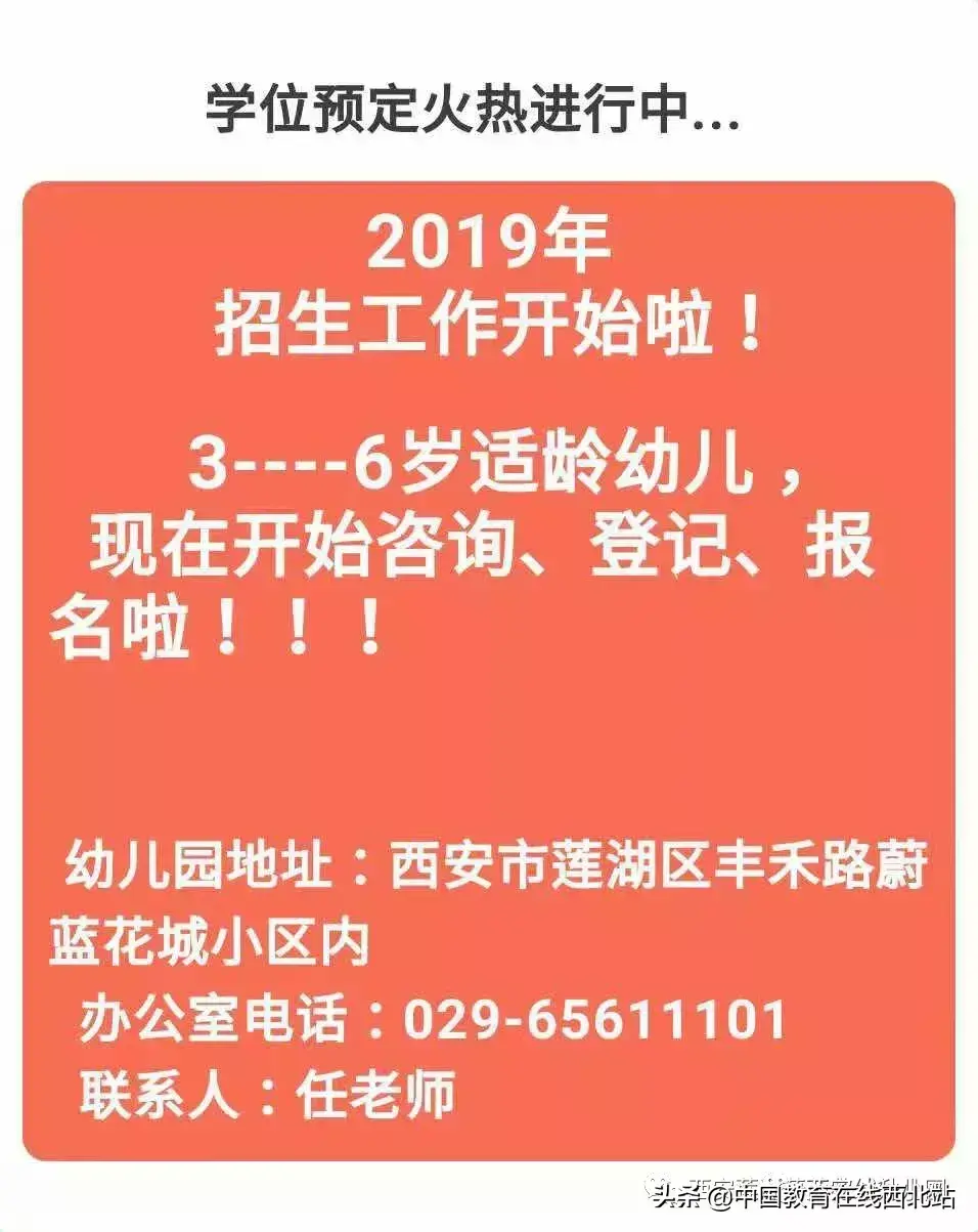 版权声明:我们致力于保护作者版权,注重分享,被刊用文章【西安幼师学校(西安20所幼儿园2019年招生简章公布)】因无法核实真实出处,未能及时与作者取得联系,或有版权异议的,请联系管理员,我们会立即处理! 部分文章是来自自研大数据AI进行生成,内容摘自(百度百科,百度知道,头条百科,中国民法典,刑法,牛津词典,新华词典,汉语词典,国家院校,科普平台)等数据,内容仅供学习参考,不准确地方联系删除处理!;