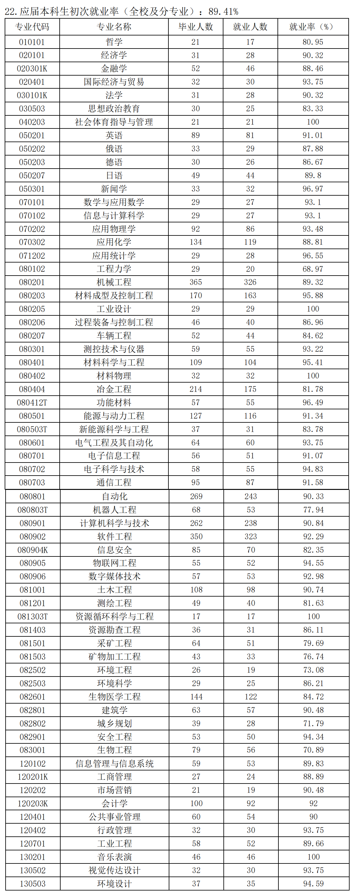 当然,家长朋友更关心孩子所学专业的就业情况。为了方便大家阅读,小编摘取2020—2021学年本科教学质量报告相关数据表格,以便各位家长研究。