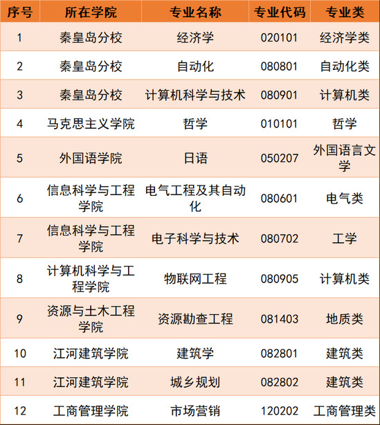东北大学“2020年度省级一流本科专业建设点”专业名单