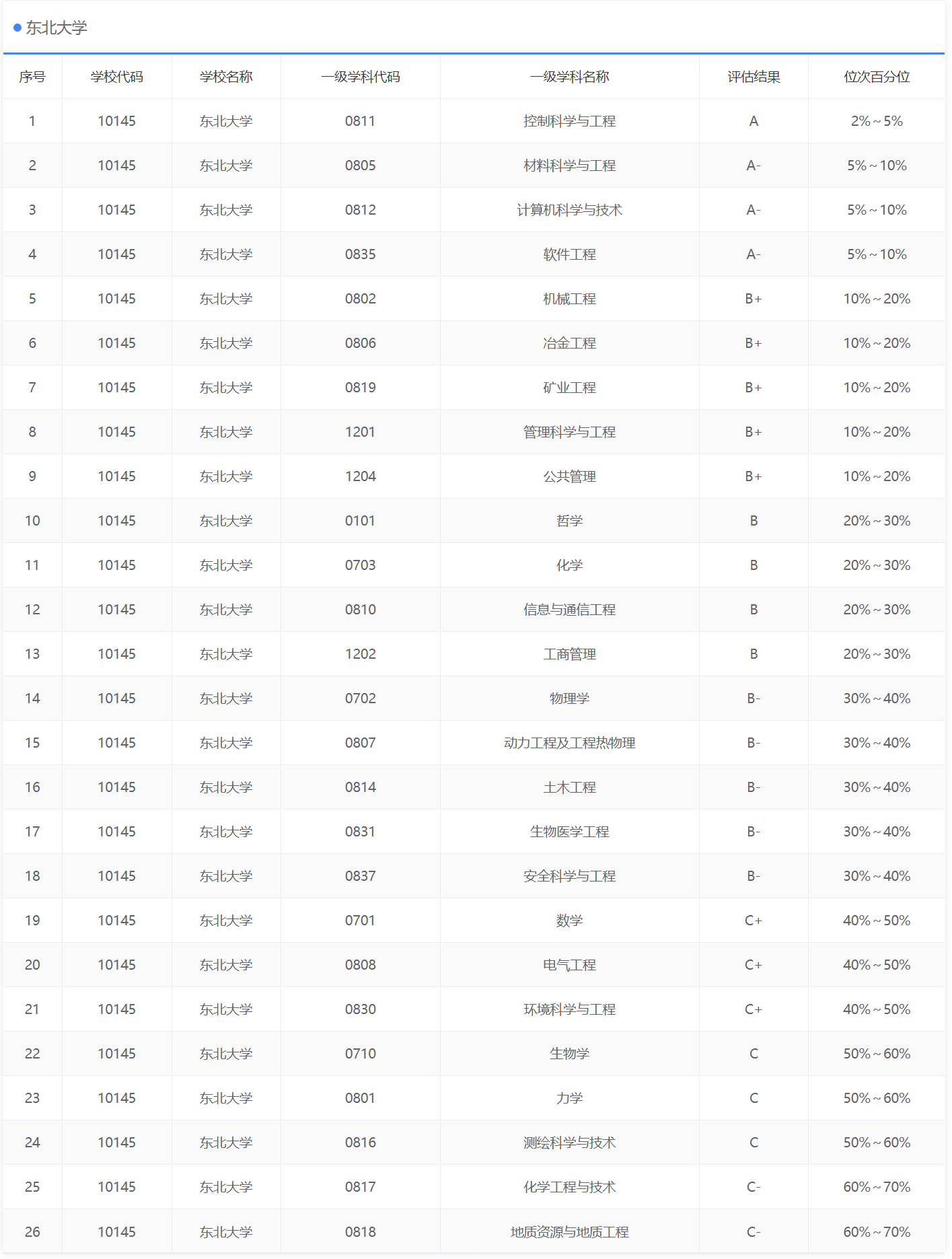 东北大学“2020年度国家级一流本科专业建设点”专业名单