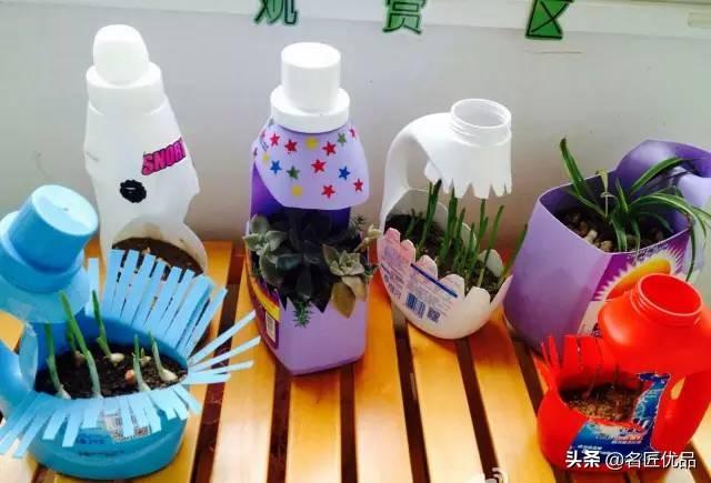 用塑料瓶做花盆,可以把一个分成两部分,一部分作底基,可以接水,另一部分则可以当花盆,再画点小装饰,既漂亮又实用,还环保,非常好哦!