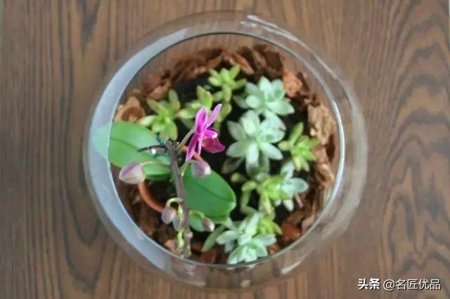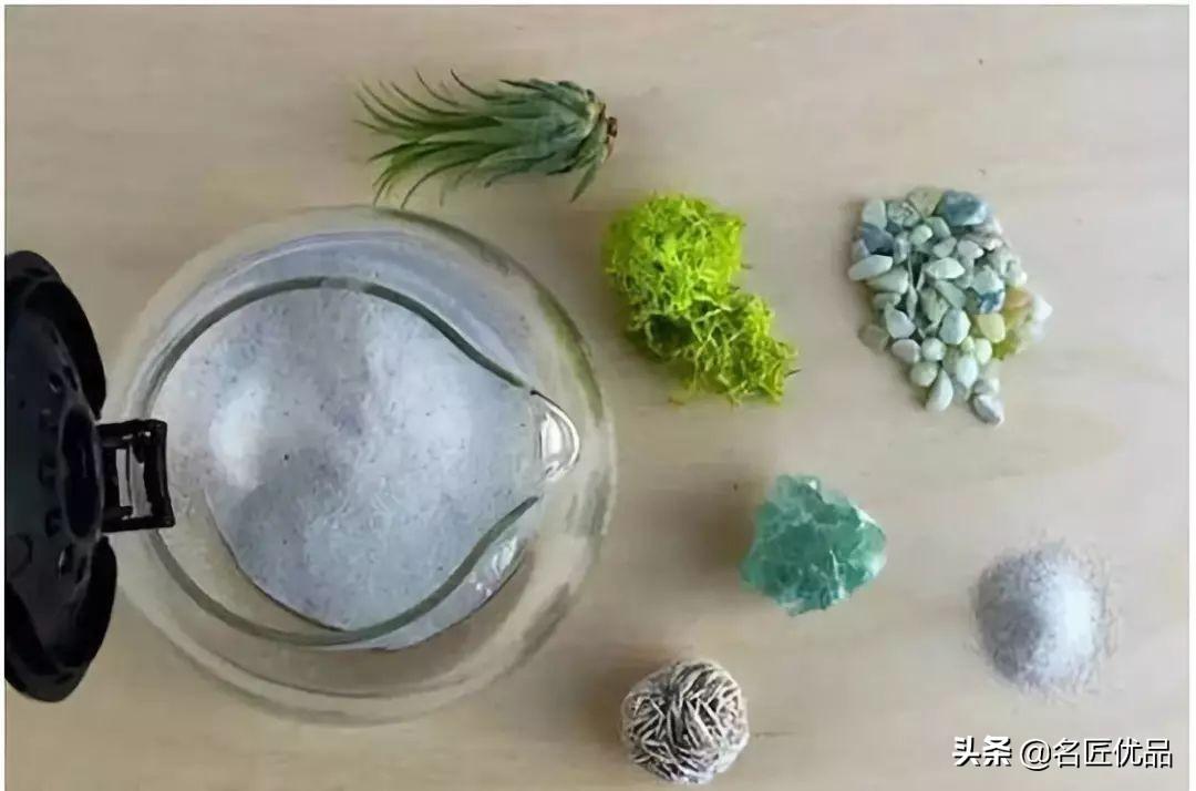第五步:事先我种植肉质植物,但这是超级简单的安排。多肉植物需要良好的排水系统,最好先将植物种植在托盘中,再把植物的托盘放到玻璃器皿的岩石。