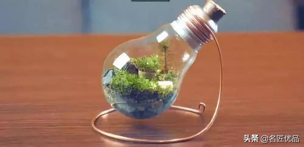 灯泡内的景色,是不是很漂亮啊! 其实很多透明玻璃瓶罐都可以拿来做漂亮的盆栽哦!发挥你的脑洞,动手吧!