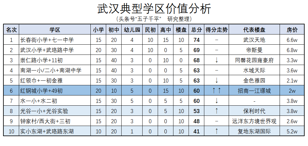 根据上述评价标准对全武汉的学区客观地排个名,大致是这样的:
