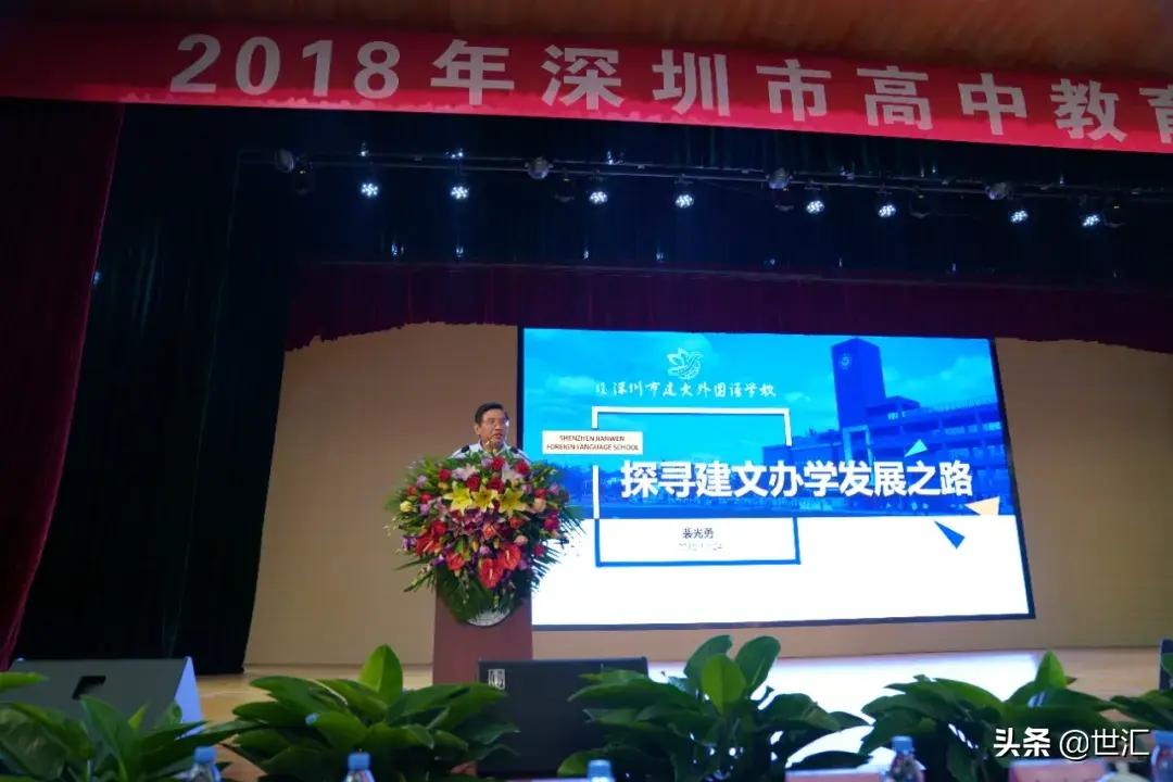 建文外国语学校校长裴光勇是中学特级教师,广东省名校长、正高级(教授)职称,原深圳市南山区教育科学研究中心主任、深圳市名师工作室指导专家、深圳大学教育培训学院兼职教授、师范学院硕士生导师,国家首届基础教育教学成果奖获得者。