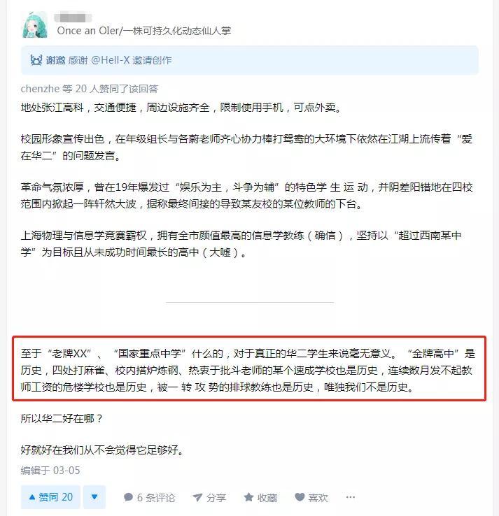 今年2020年,华二附中总共有330人参加高考,其中,有28人被清北的“强基计划”批次录取(12人清华、16人北大)。相比于去年,今年华二附中的平行志愿分数线有所上涨,涨了2.0分,为600.5分,和上海中学一样。而复交综评的录取人数,也比去年增加了25人。