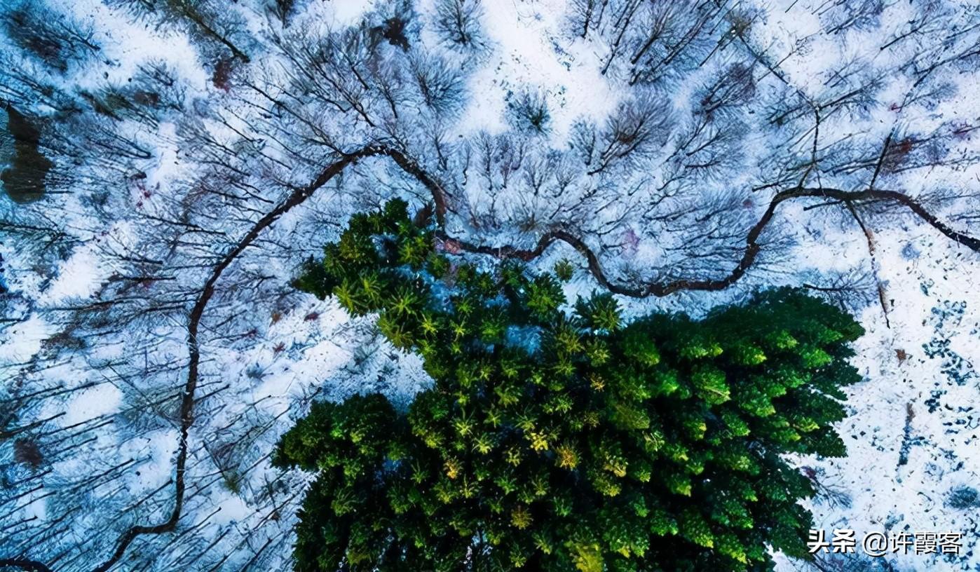 难道你不喜欢这幅森林的头顶照片吗?那些绿树与白雪覆盖的草原形成了鲜明的对比。这个画面绝对是美丽的,但它也有一种怪异的品质。