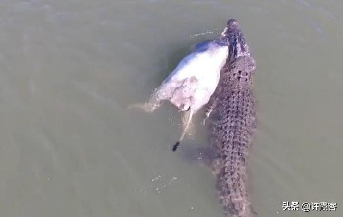 看看这只鳄鱼,它正带着它的晚餐,游走! 它嘴里含着一整头牛。考虑到它可以对巨大的牲畜做这种事,我们不认为人类会做得更好……