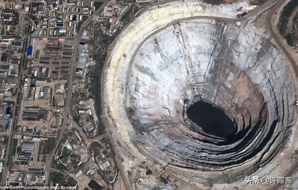 这个可怕的钻石矿位于南非的一个小镇上。如你所见,这些建筑矗立在边缘。我们甚至无法想象住在这个坑旁是什么感觉。