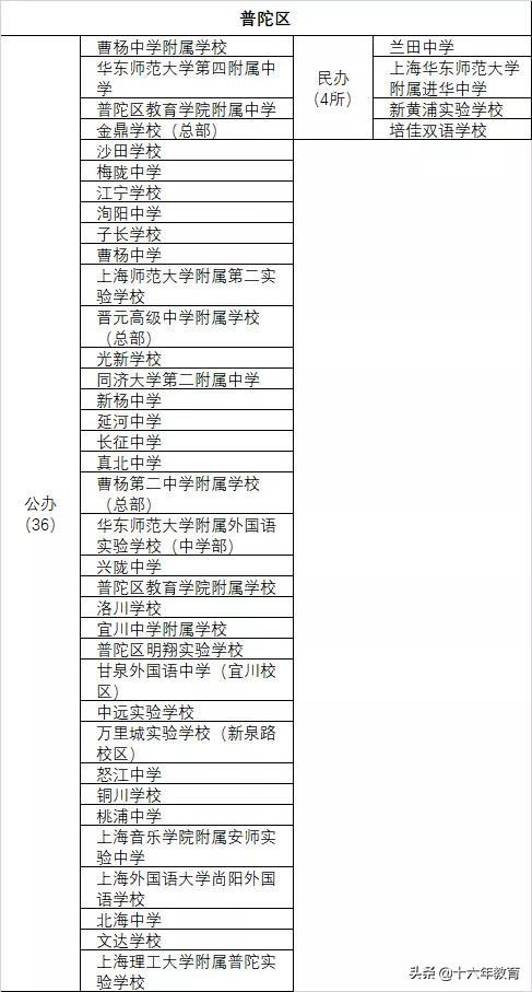 市重点高中:曹杨二中、宜川中学、晋元中学
