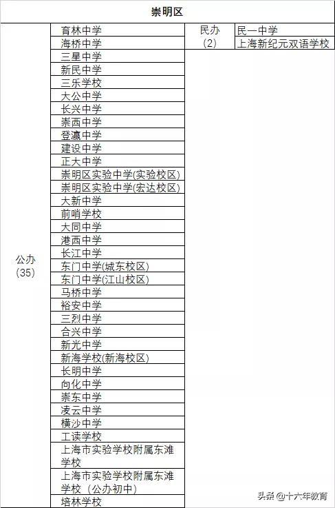 优质公办:东门中学、崇明实验中学、上实东滩