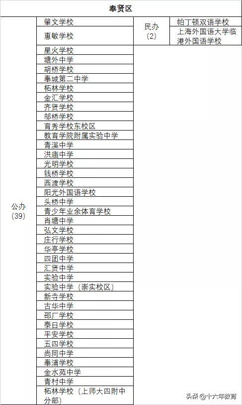 优质公办:奉贤实验、育秀学校、弘文学校、华亭学校、奉贤二中、阳光外国语