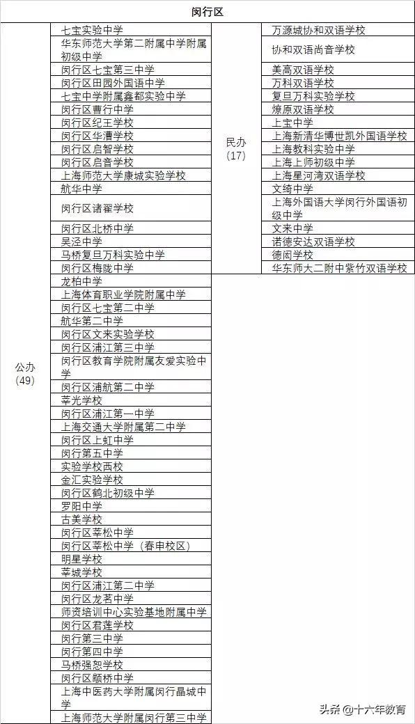 市重点分校或校区:市二梅陇、上师大附中闵行分校、华二紫竹、向明浦江、交大附中闵行分校