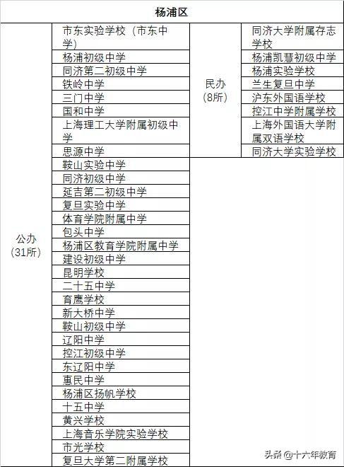 热门公办:复旦二附中、昆明学校、上音实验、铁岭中学