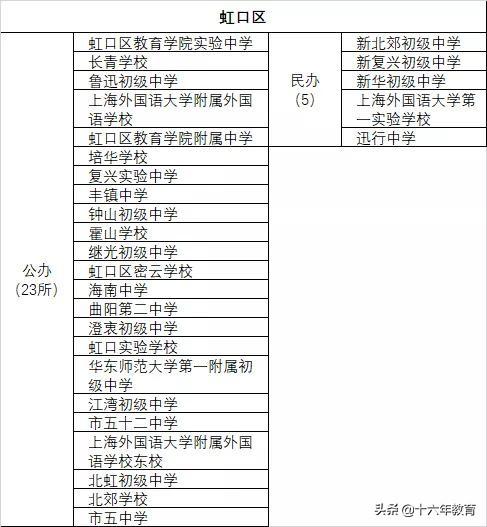热门公办:上外附中、上外附中东校、长青中学、北郊学校、虹口实验、江湾初级、曲阳二中
