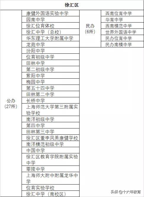 优质公办:徐汇中学、徐教院、园南中学、位育初级、师三实验、南模初级、中国中学