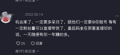 评论区里有不少人给他提建议,让他多和媒体互动互动,涨涨粉,这样就能直播带货,每天坐在那里,一天赚的比他一个月都多。