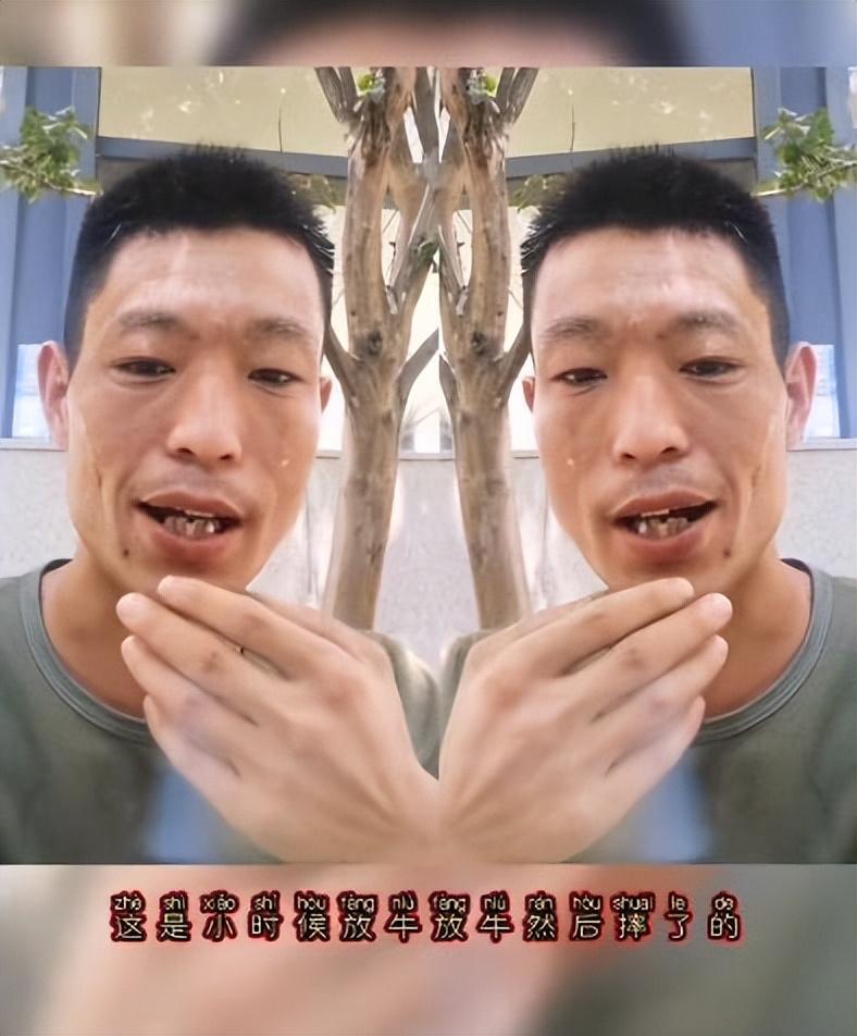 他有点歪斜的嘴巴也是当年放牛时候摔的,担心家里没钱看病,他自己用力把摔脱臼的下巴复位了回去,只不过技术不好,留下了这个后遗症。