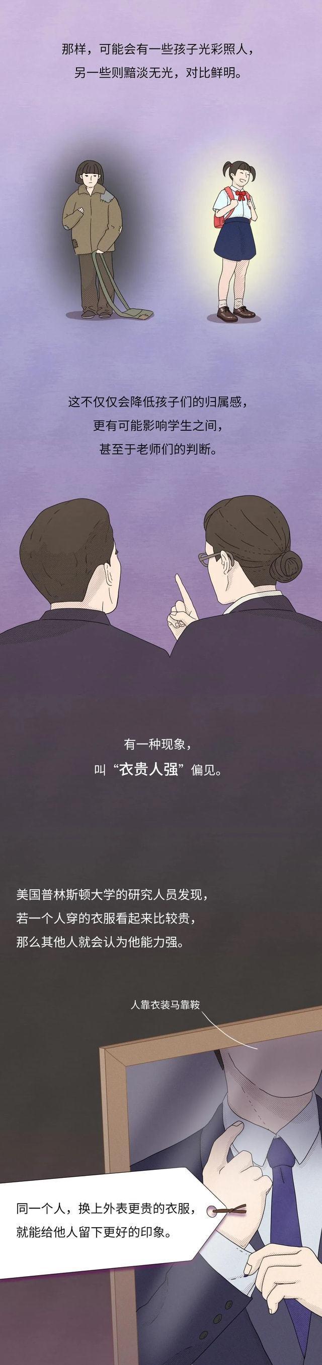 为什么会有校服呢?是因为每个孩子的家庭条件不一样,孩子穿上统一校服后,就会消除彼此之间的攀比心理,也会有一种统一感。