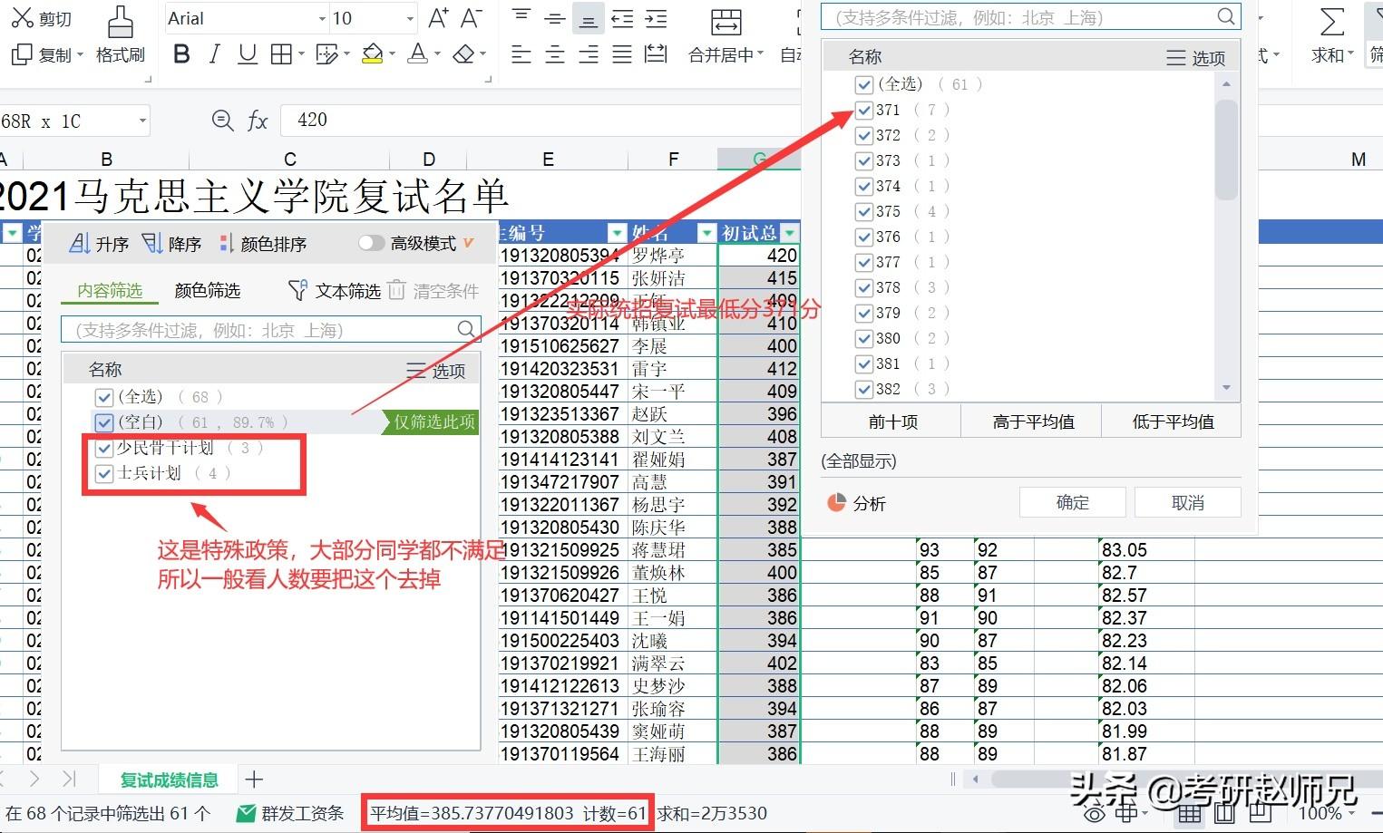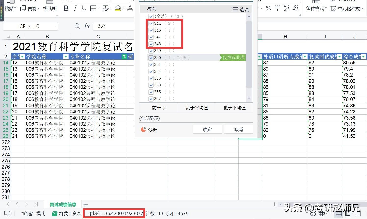 最终实际统招录取10人,复试被刷掉3人。所以分数目标一定是平均分,不然风险也很大。
