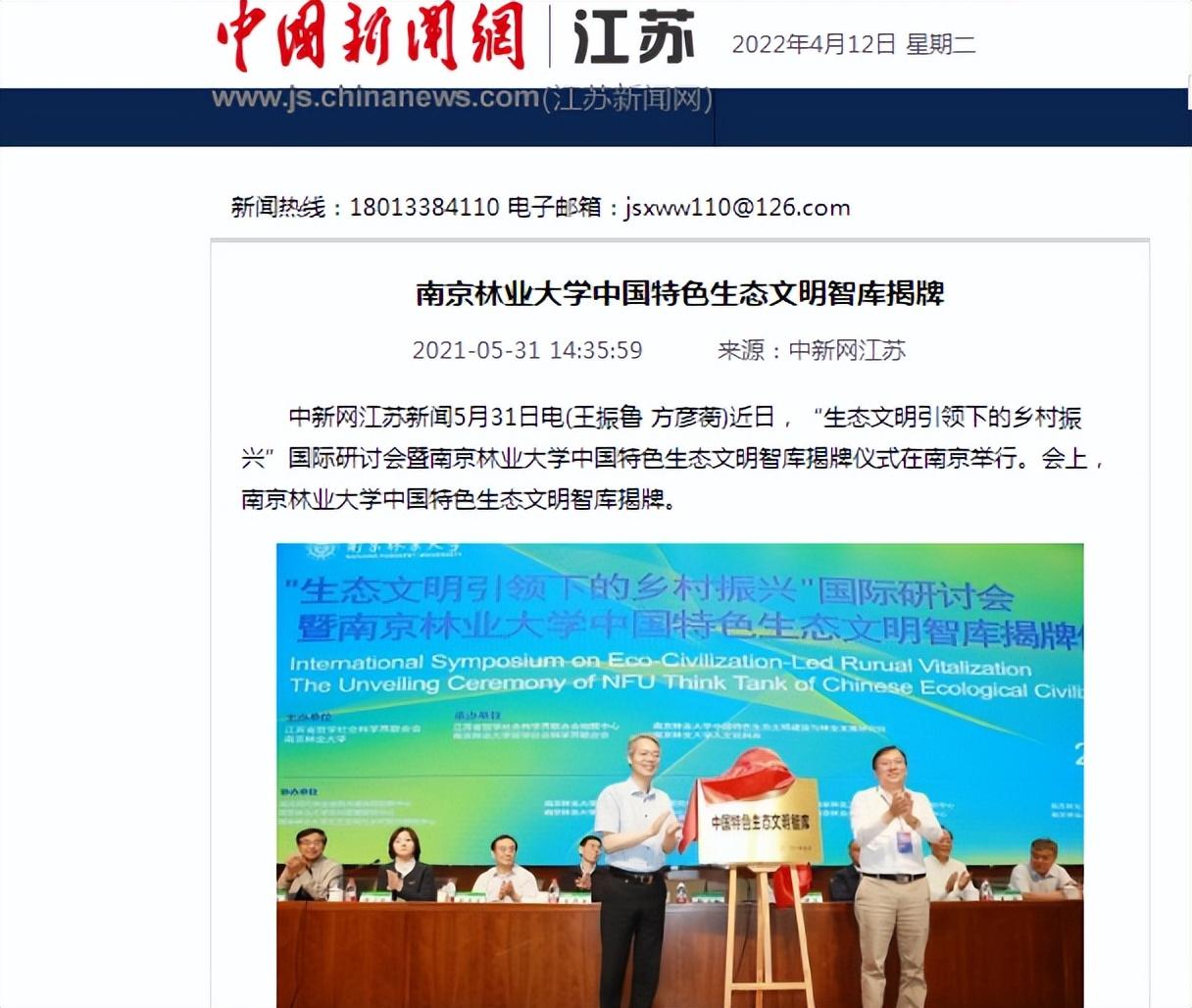 “生态文明引领下的乡村振兴”国际研讨会暨南京林业大学中国特色生态文明智库揭牌仪式在南京举行,会上,南京林业大学中国特色生态文明智库揭牌。