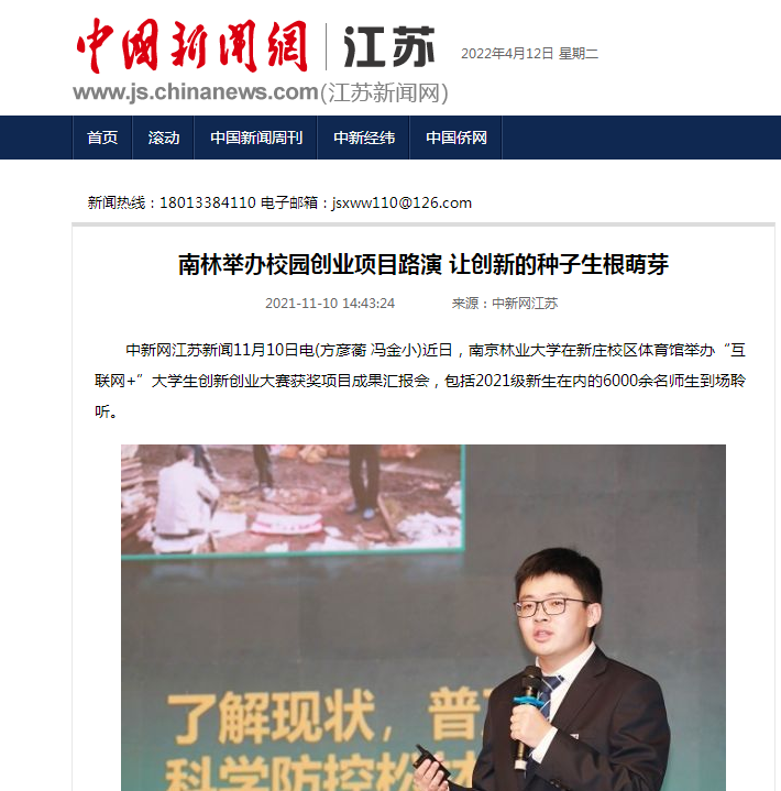 南京林业大学举办的“互联网+”大学生创新创业大赛获奖项目成果汇报会,提到在第七届中国国际“互联网+”大学生创新创业大赛中,南林收获一份亮眼的“成绩单”:国赛金奖5项、银奖1项、铜奖7项。同时,学校作为省内唯一一所高校荣获“青年红色筑梦之旅”赛道高校集体奖,大陆项目获金奖数量位居全国高校前列,全国农林类高校和江苏省内高校榜首。
