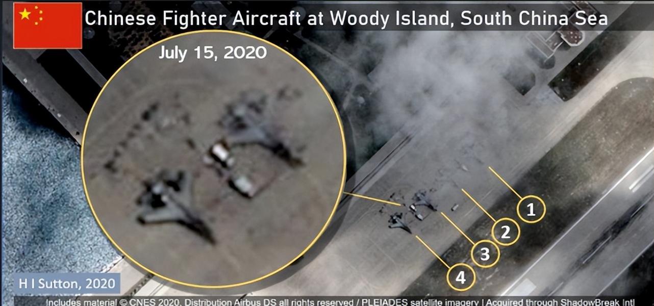 卫星照片显示,在西沙群岛的永兴岛上有四架战斗机