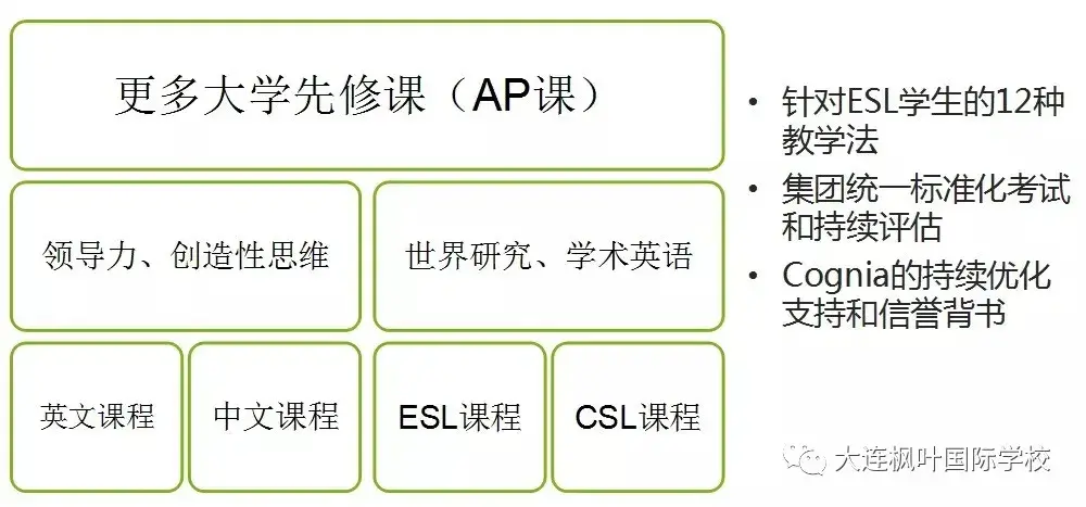 大连枫叶国际学校中西教育优化结合的办学模式,是一个独特和创新的模式,这个模式可以概括为:“四个第一”、“三个结合”、“两个认证”、“一个对接”: