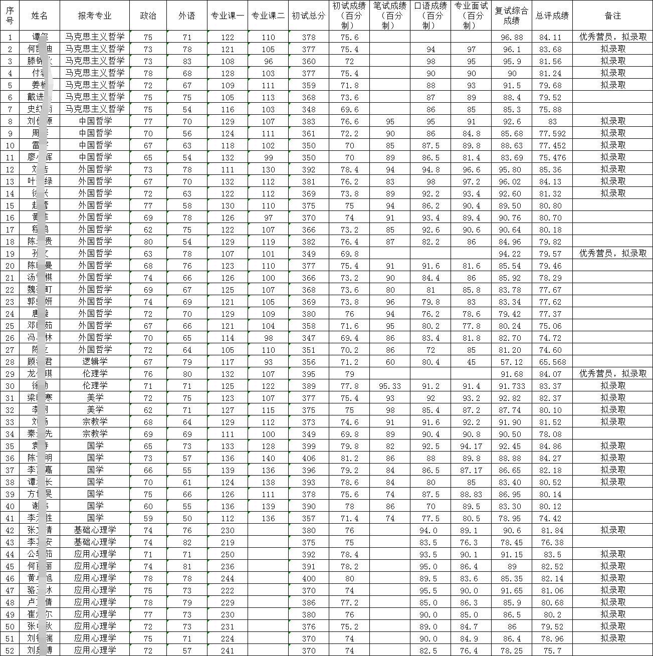 下图包含各专业的录取名单,包括:考研初试成绩,考研复试成绩,最后的综合成绩。