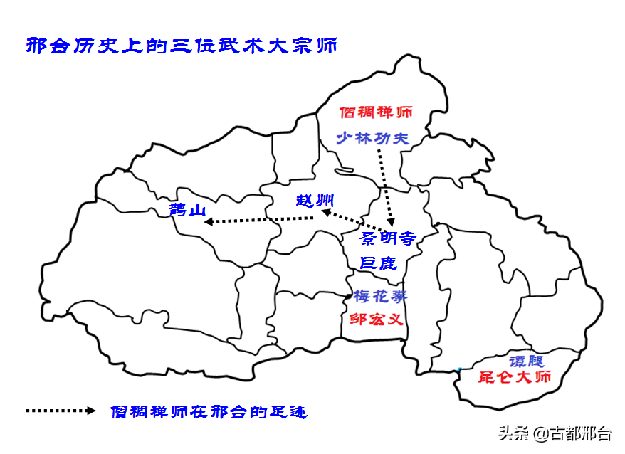 以上就是这三大武术流派与邢台的渊源介绍,从南北朝的僧稠禅师,到宋朝的昆仑大师,到明末清初的邹宏义祖师,邢台差不多平均每五百年就有一位渊源颇深的功夫大师,他们做的贡献光耀千秋,是邢台的骄傲,也是中华儿女的骄傲,除了这几位开山立派的大宗师外,邢台也出了一些卓有成就的一代宗师,例如开创了小架梅花拳的张从富,开创了王其和太极拳的王其和等,就不再细说了。