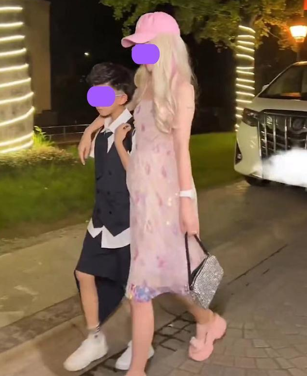这天晨曦妈妈穿着一身“芭比粉”去学校接儿子放学,她头戴粉色鸭舌帽,身穿粉色连衣裙、脚踩粉色高跟鞋,金黄色的发丝之间还有粉色的发丝漏出来。不料这身打扮遭儿子大力吐槽。