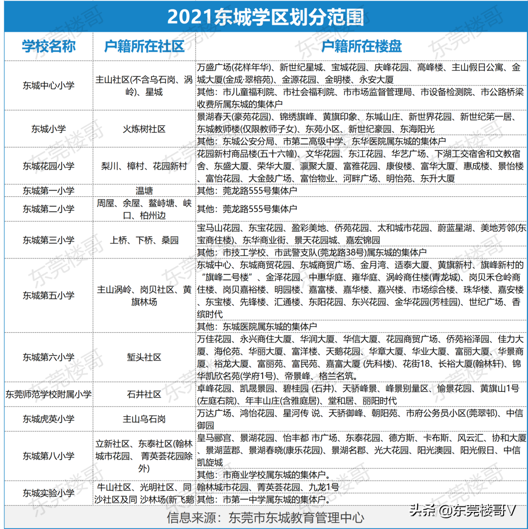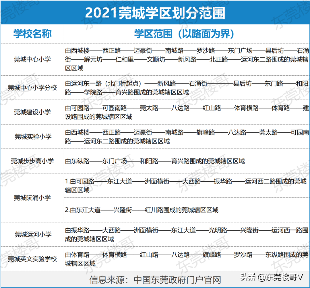 这一期,楼哥介绍的是莞城、南城、东城的公办小学学区划分情况。