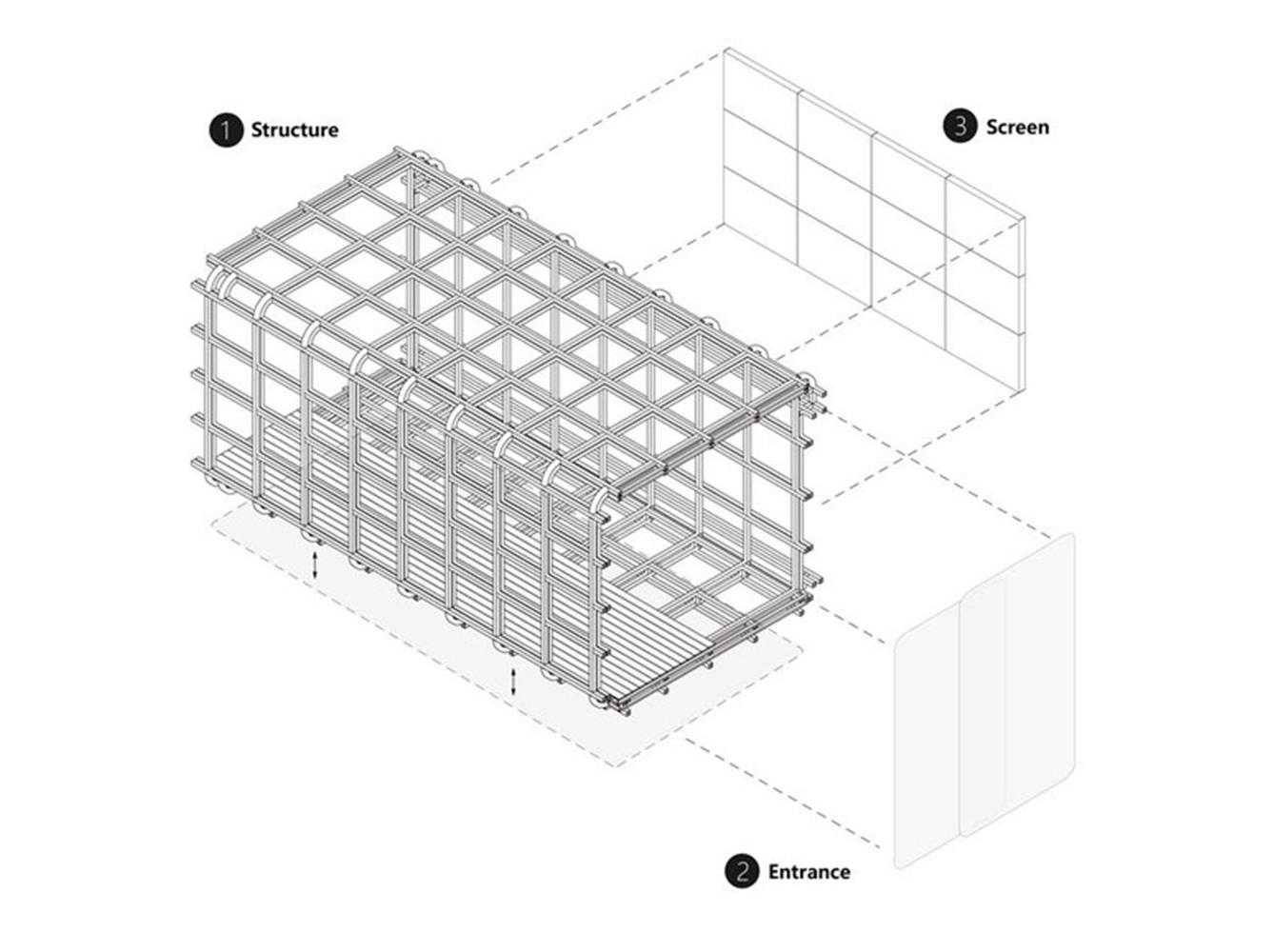 九毛九成立于1995年,在中国拥有逾25年餐饮经营历史,九毛九集团的经营策略以多品牌及多概念策略为基调,除了以经典的“九毛九山西面馆”作起点之外,集团还通过创立不同风格的品牌服务多种客户群,至今,九毛九餐饮集团旗下包括九毛九、太二、2颗鸡蛋、怂、那未大叔5个品牌。九毛九集团,品牌由旗下各大餐饮子品牌围绕而成。壹所输入星球概念,把九毛九集团比喻成一个星系,各大子品牌就是星系里主要星体。愿景打造属于九毛九的宇宙世界,在“九毛九星系”里,九毛九集团办公空间扮演的是一个“方舟”的角色,展厅内承载所有餐饮品牌星球的数据信息,期望参观者来到此空间可以犹如坐上宇宙方舟,穿梭在九毛九品牌星球之中,众览整个星系。位于广州天河区原马场处,旧时广州赛马业的高光时刻,像香港一样,广州也有过“舞照跳,马照跑”的日子。我们希望用简单的形体带来对既定事物的陌生感,大堂入口灵感来自太空人造卫星,从天而降,坐落在九毛九入口处以指引集团方向,守护九毛九的每一颗“星体”。入口外立面的材质我们运用了泡沫铝和石材的穿插,在原有的结构柱体基础上将柱体放大至一个夸张的尺度,泡沫铝在与柱体的穿插中形成“人造卫星”的同时充当二楼办公的挡板。