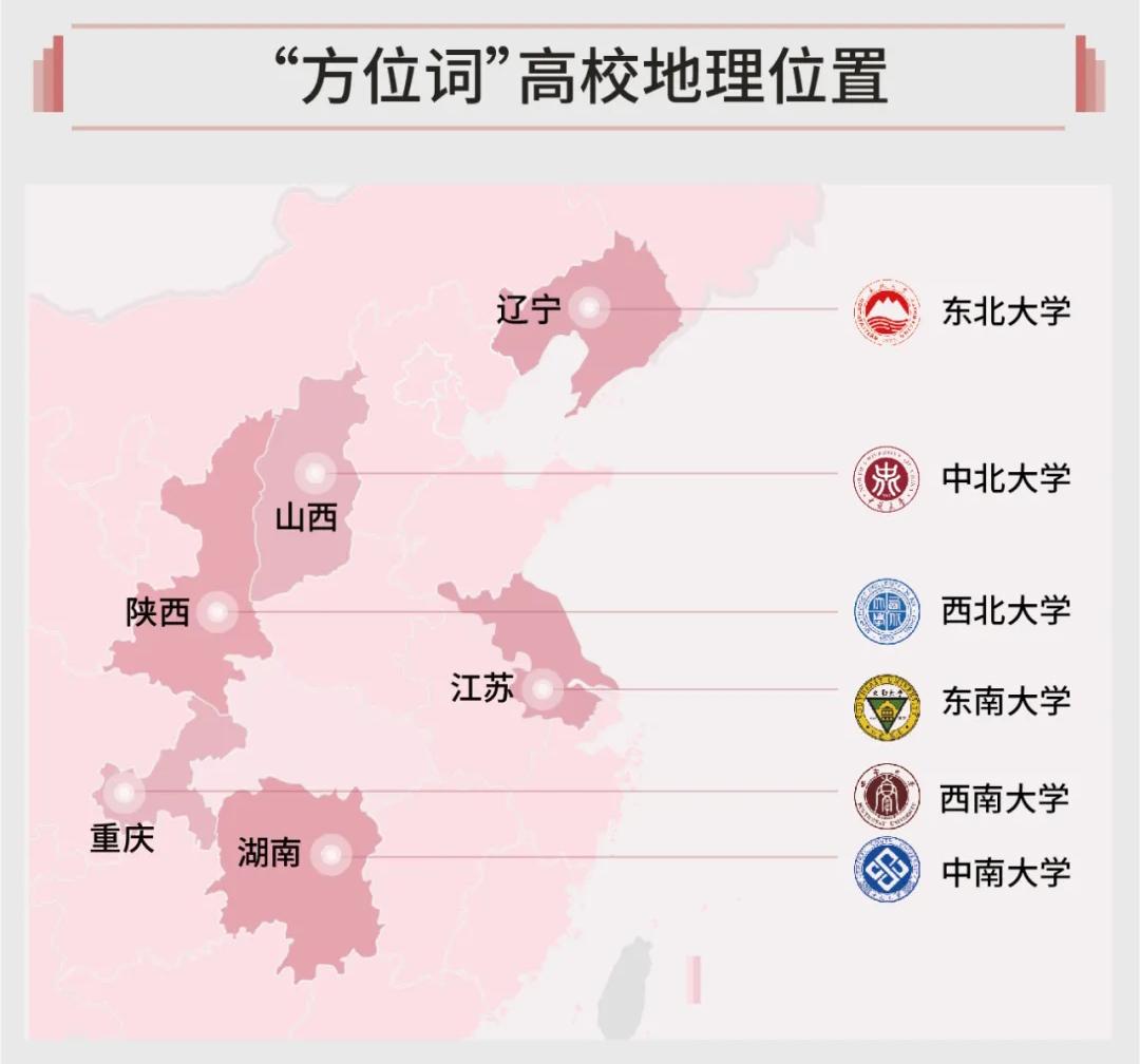 在我国,有一批特殊的大学,他们的名字都是按照方位来命名的。