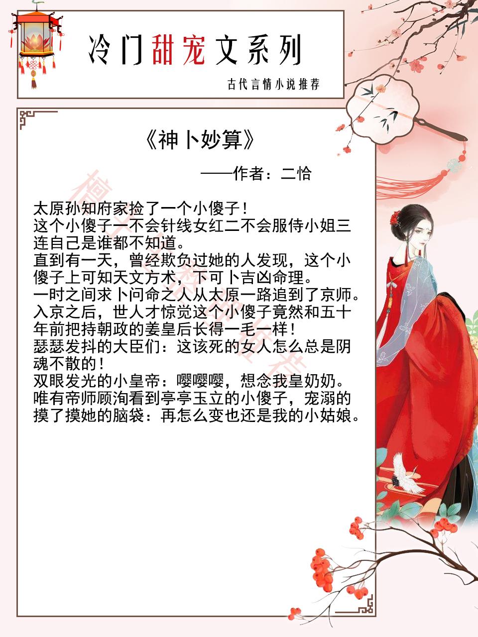亲们,今天来推五本冷门却剧情精彩的古代甜宠文吧!