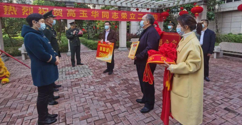 原来,他们是为了祝贺小区里一位荣立二等功的战士,这位战士就是高玉华。