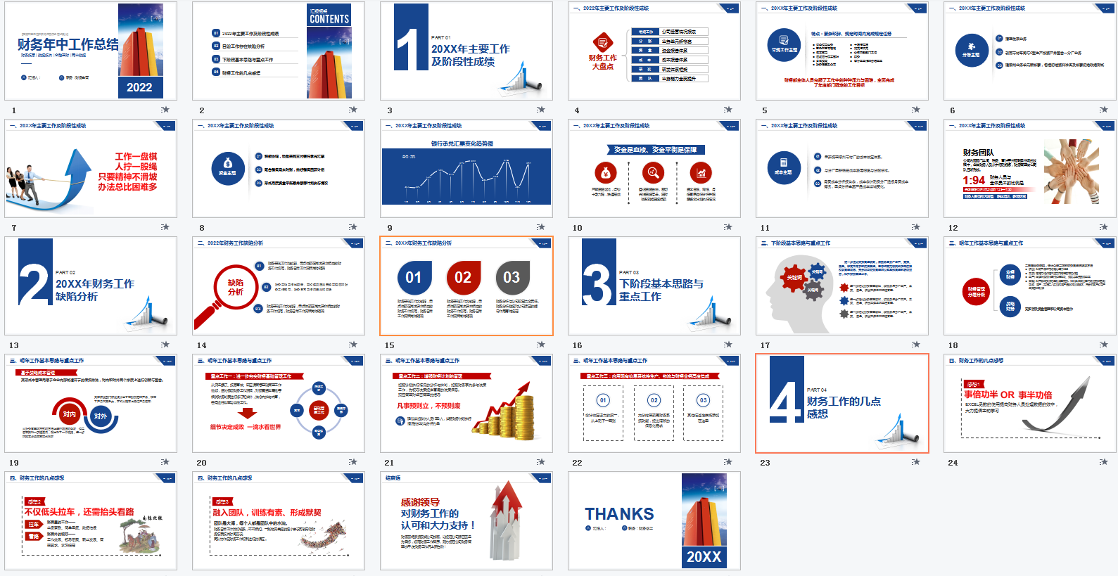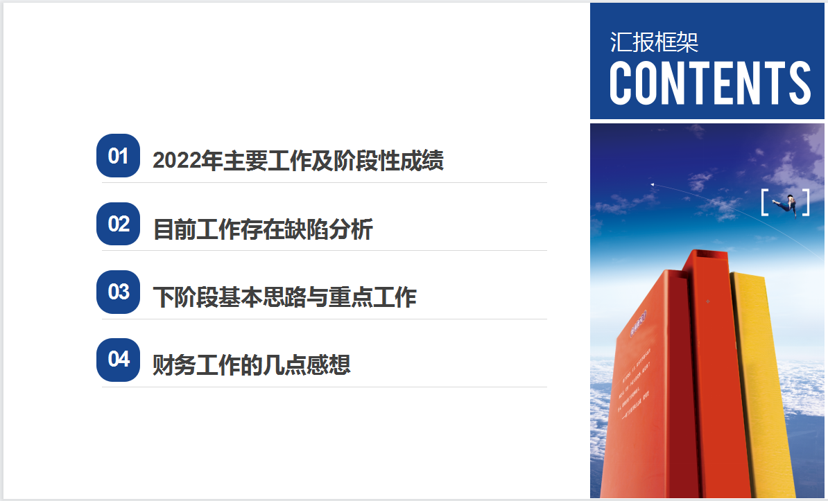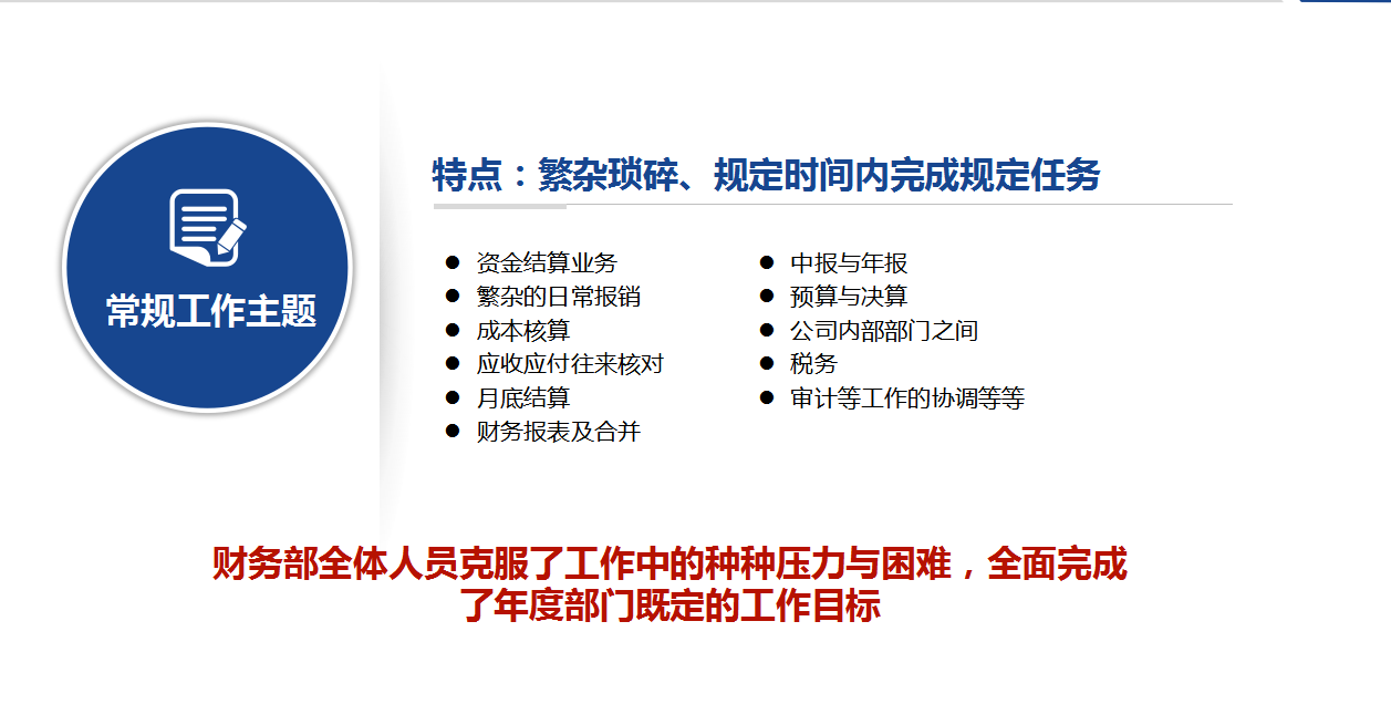 上述就是财务部工作总结汇报的PPT了,很多财务会计不擅长做PPT,上述的简单模板,可以在做财务工作总结汇报时套用。