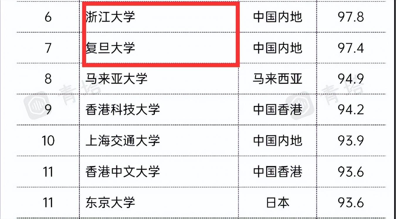 浙大和复旦两所顶尖名校的排名是直接顺在清华之后的,在亚洲大学前10强的院校中,我国一共有5所院校成功上榜,除了北大、清华、浙大和复旦之外,上海交大就是正好卡在了第10的位置上。