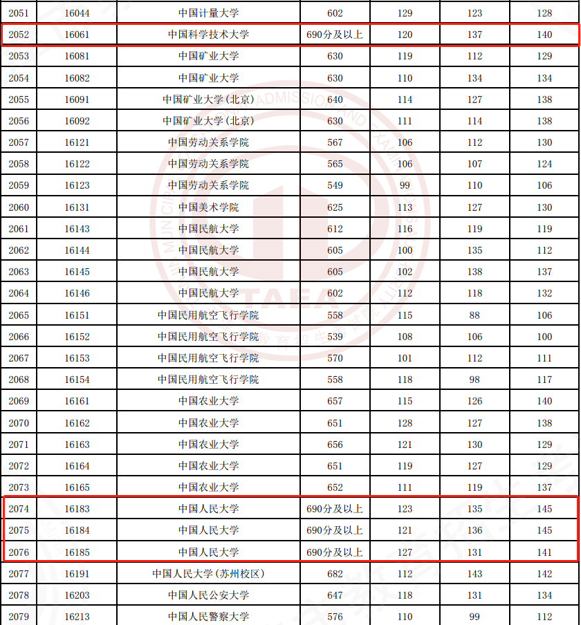 这8所高校公布的提档线中,没有说具体提档线是多少,只说了都在690分及以上,因此不好对其进行排位,暂且认为清北并列第一,其他6校并列第三。