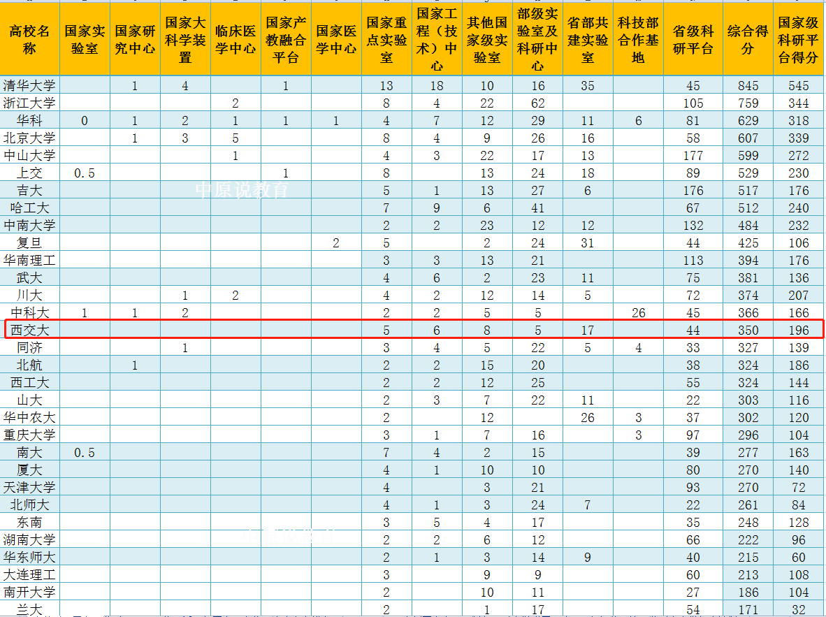 科研平台:学校拥有国家重点实验室5个、国家工程(技术)研究中心9个、国家工程实验室1个、国家国际科技合作基地5个、2011协同创新中心1个、教育部哲学社会科学实验室1个,省部级重点科研基地171个。