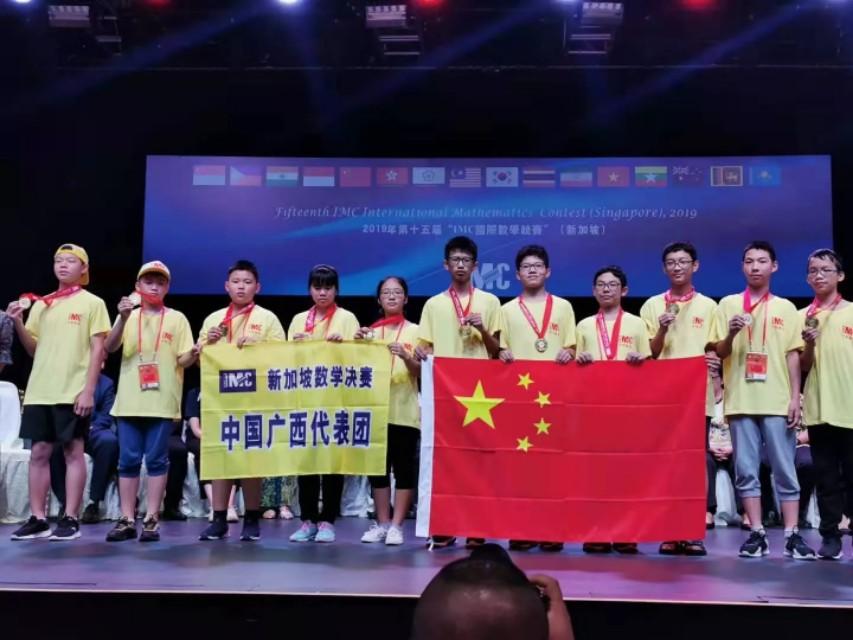 在2019年在新加坡举行第十五届“IMC国际数学竞赛”中,派出精心挑选的31名奥数队员,代表中国广西战队与来自16个国家和地区共1500名选手同台竞技。荣获金奖1名、银奖1名、铜奖4名、优胜奖25名全员获奖的好成绩。