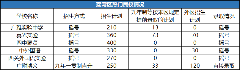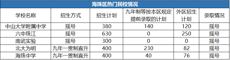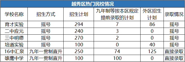 2020年只有4所学校参与越秀区民办学校摇号招生,分别是: