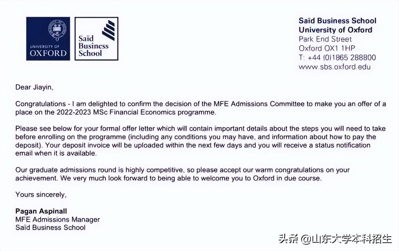大四开学,刘佳音正式开始申请留学,撰写申请文书、了解招生信息、投递相关材料等都靠自己完成。凭借着优异的成绩和出色的表现,在刘佳音申请的英法两国五所学校中,她收到了包括牛津大学、伦敦商学院、INSEAD(含奖1.5w欧)、ESCP(第一年全奖)在内的顶级商学院的录取通知。最终,刘佳音选择进入牛津大学金融学专业攻读硕士研究生。