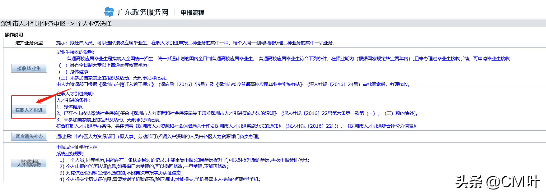 4、登录进去后,点击在职人才引进: