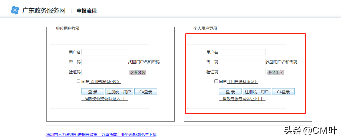 3、然后选择个人登录进去,一般这个账号是社保账号,如果忘记的话可以点击找回,或者点击省政务服务网认证