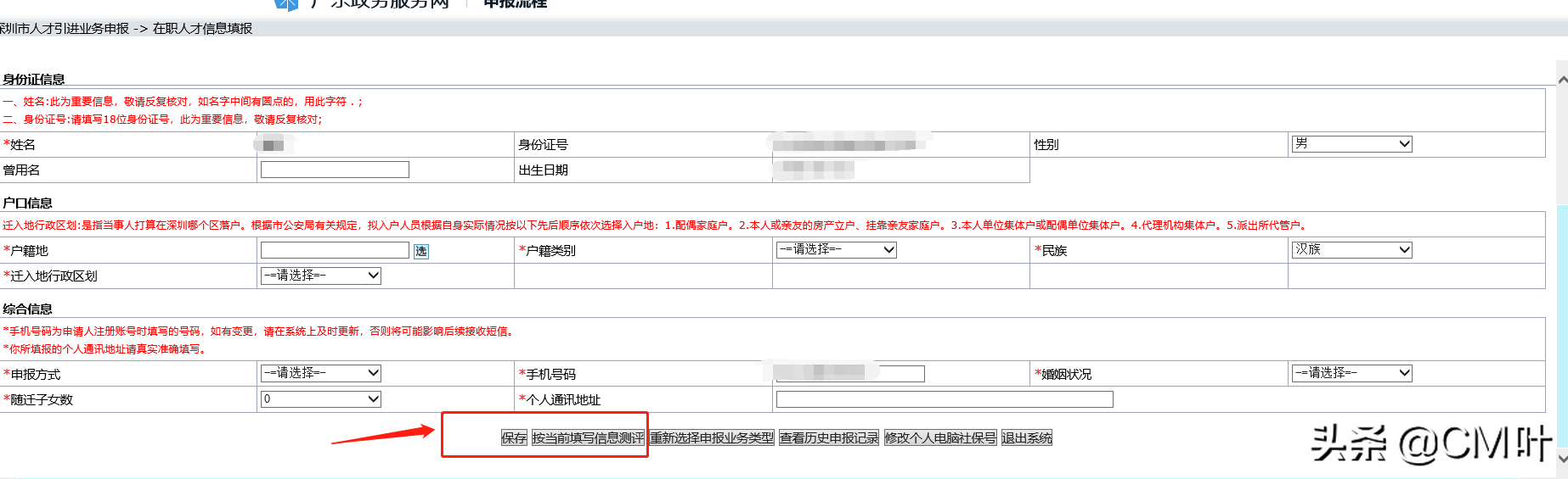 6、全部填写完之后,点击下面保存及按照当前信息填写测评