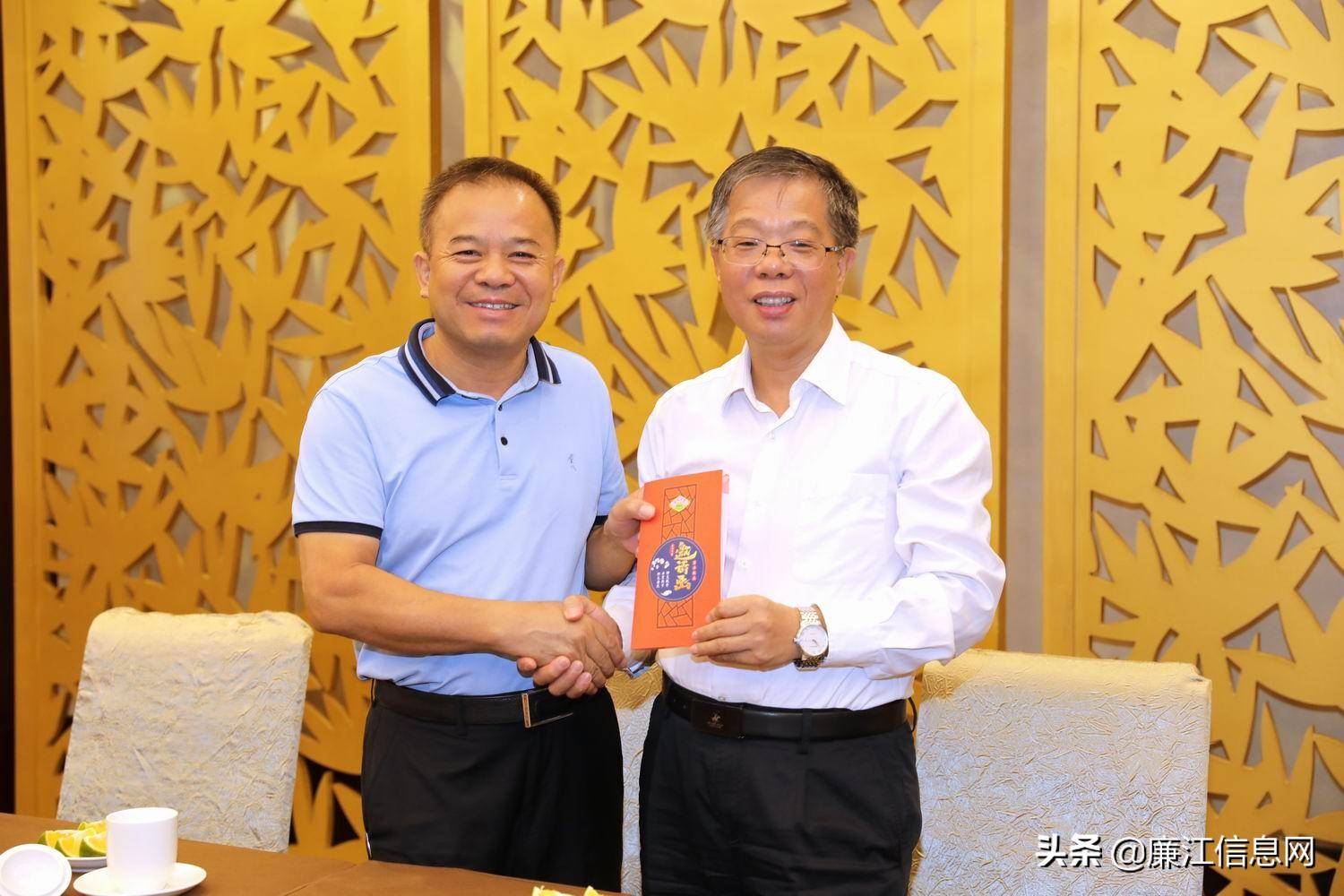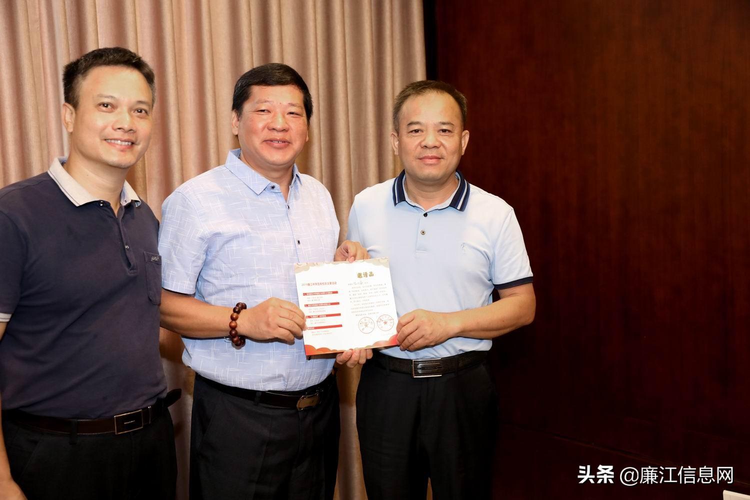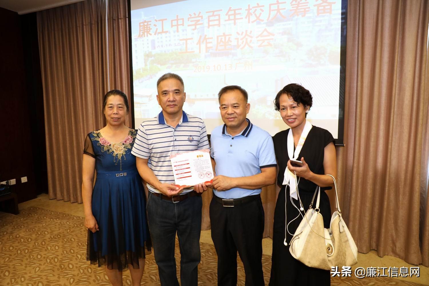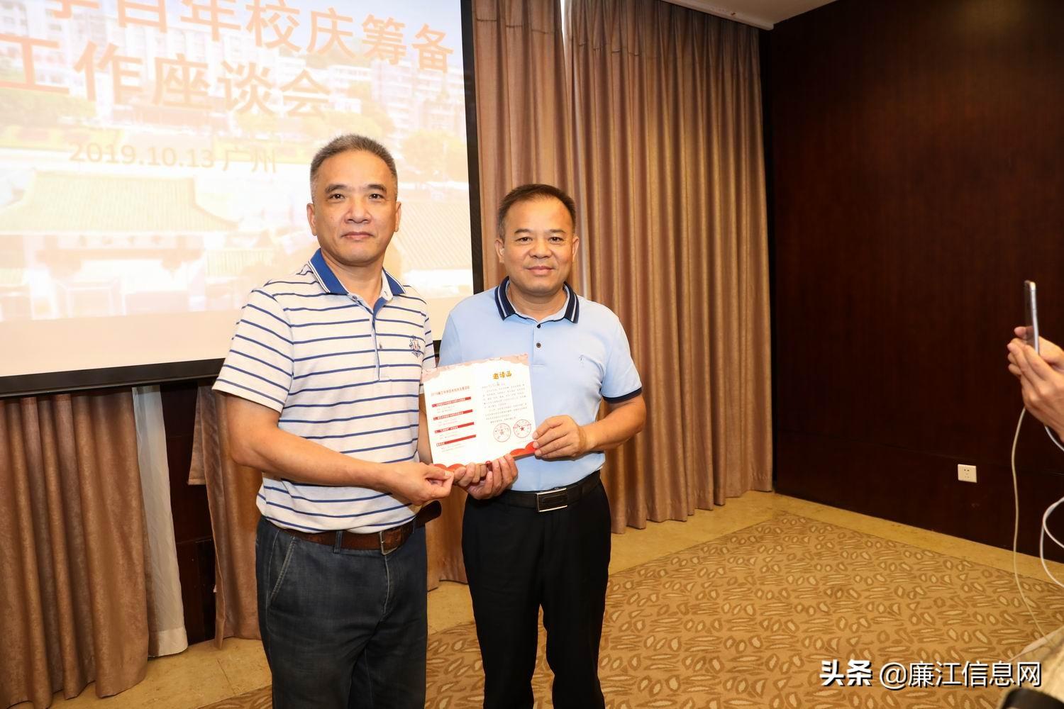 廉江中学70届校友潘胜华,深夜奔驰千里,代表本届同学赴省城参加百年校庆筹备工作座谈会,激动地从张旭校长手中接过校庆邀请函。