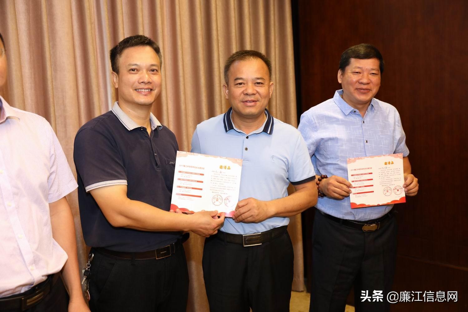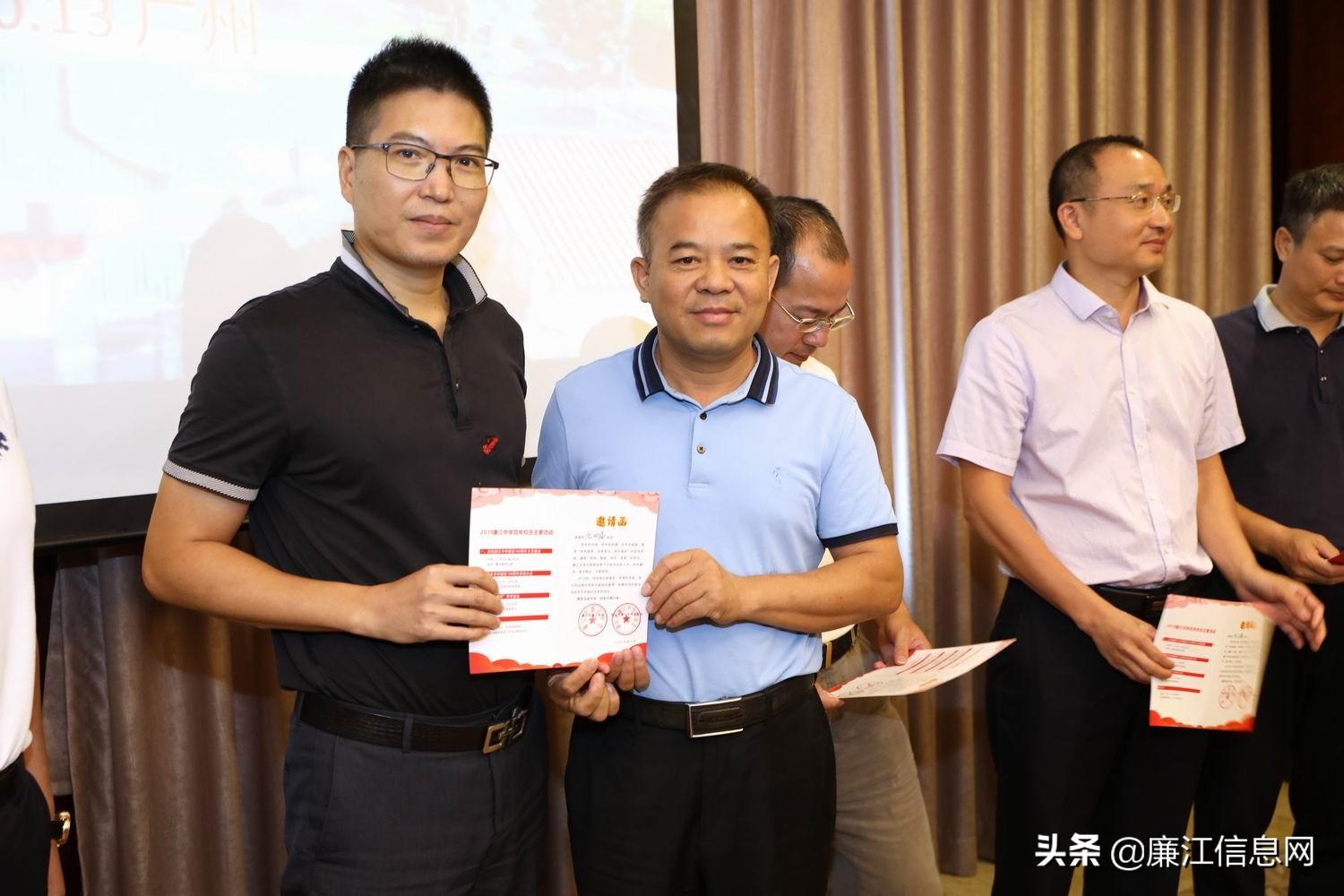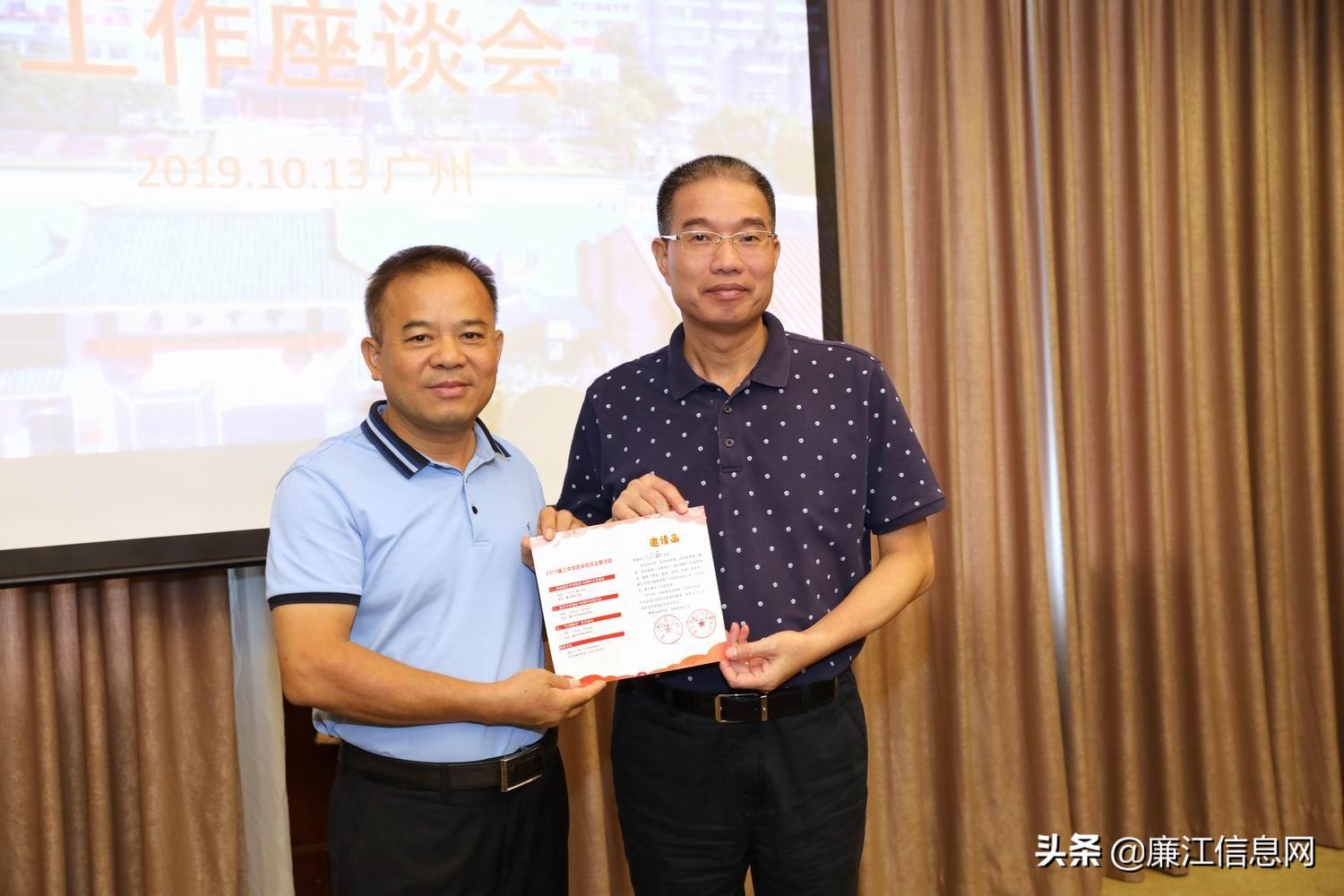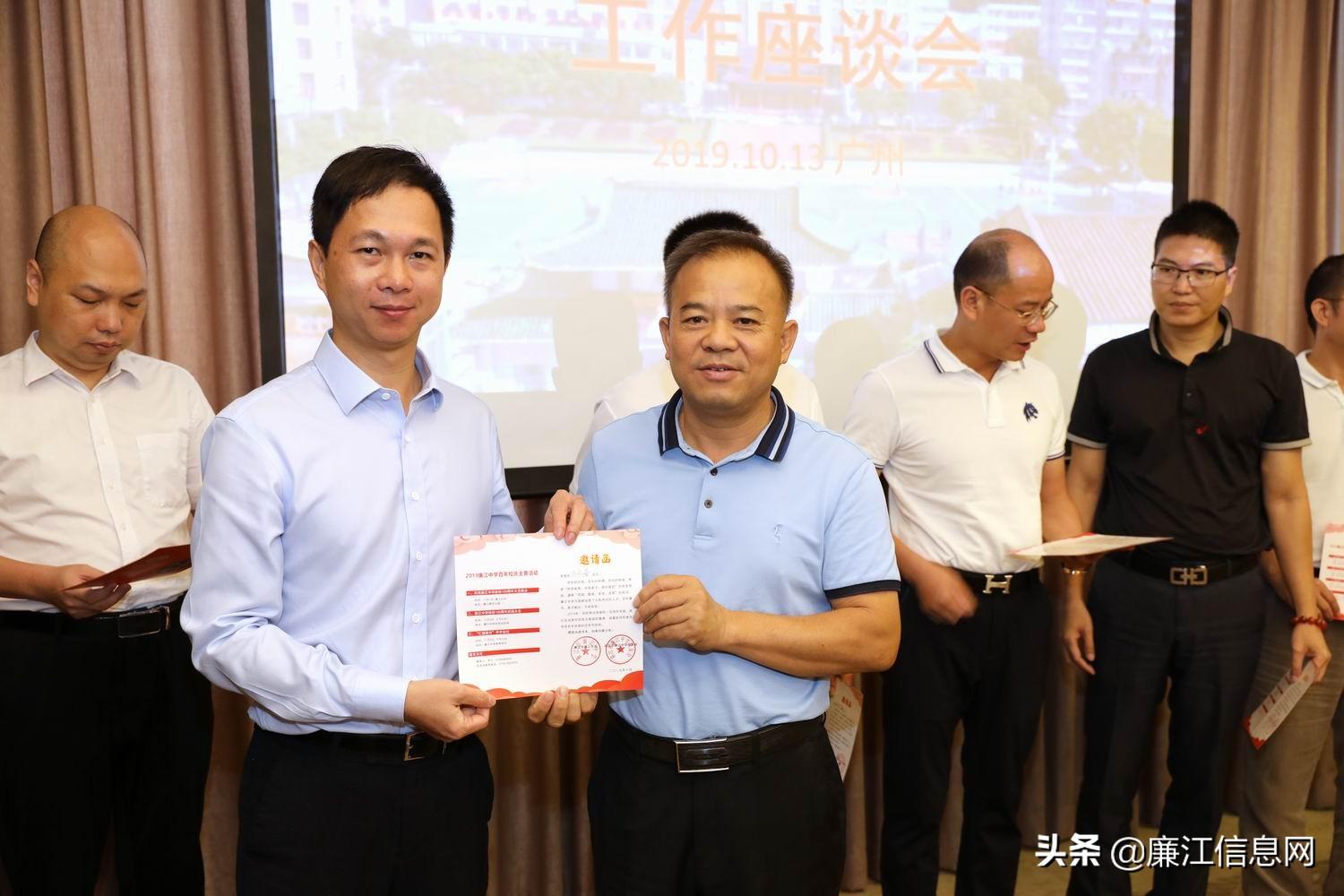 廉江中学70届校友潘胜华,深夜奔驰千里,代表本届同学赴省城参加百年校庆筹备工作座谈会,激动地从张旭校长手中接过校庆邀请函。