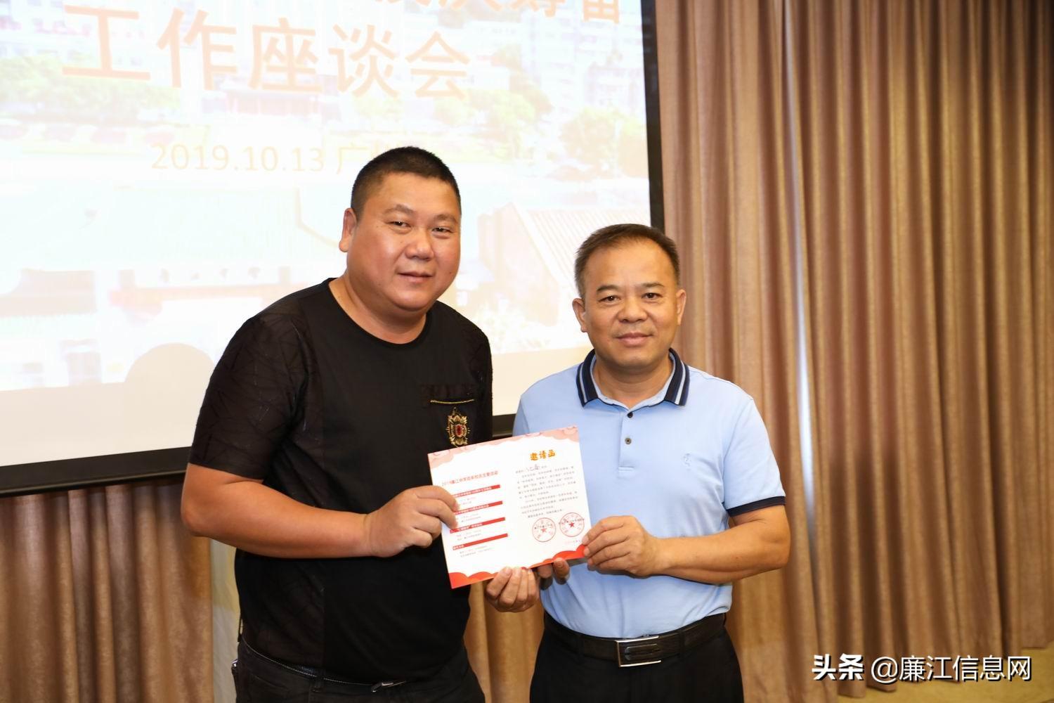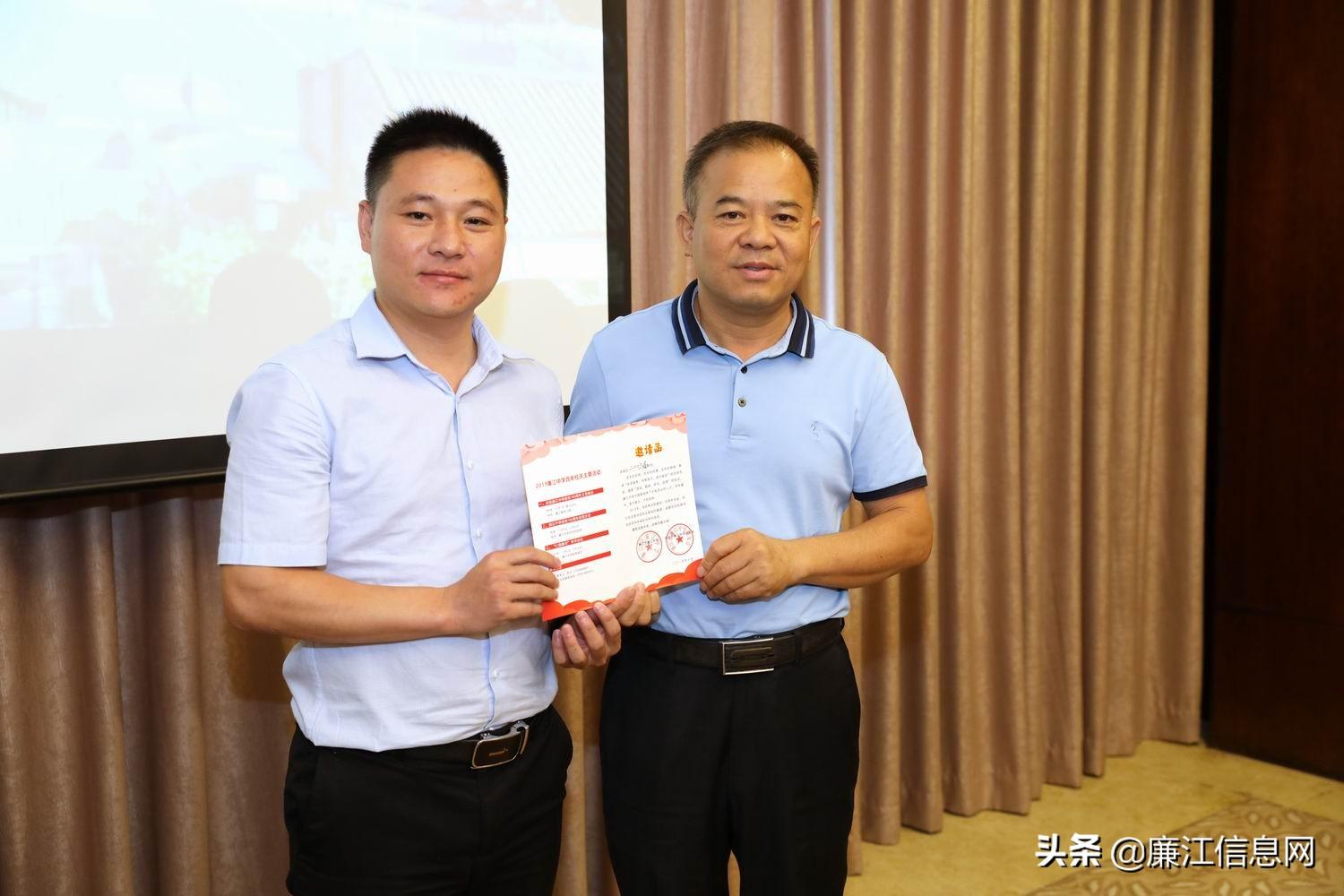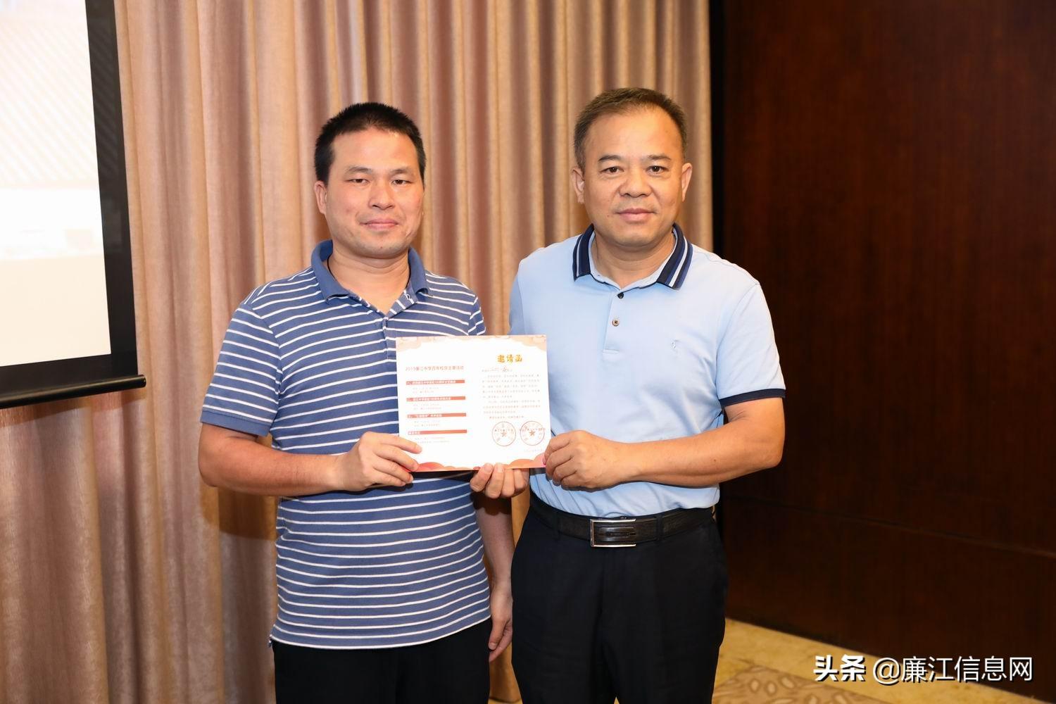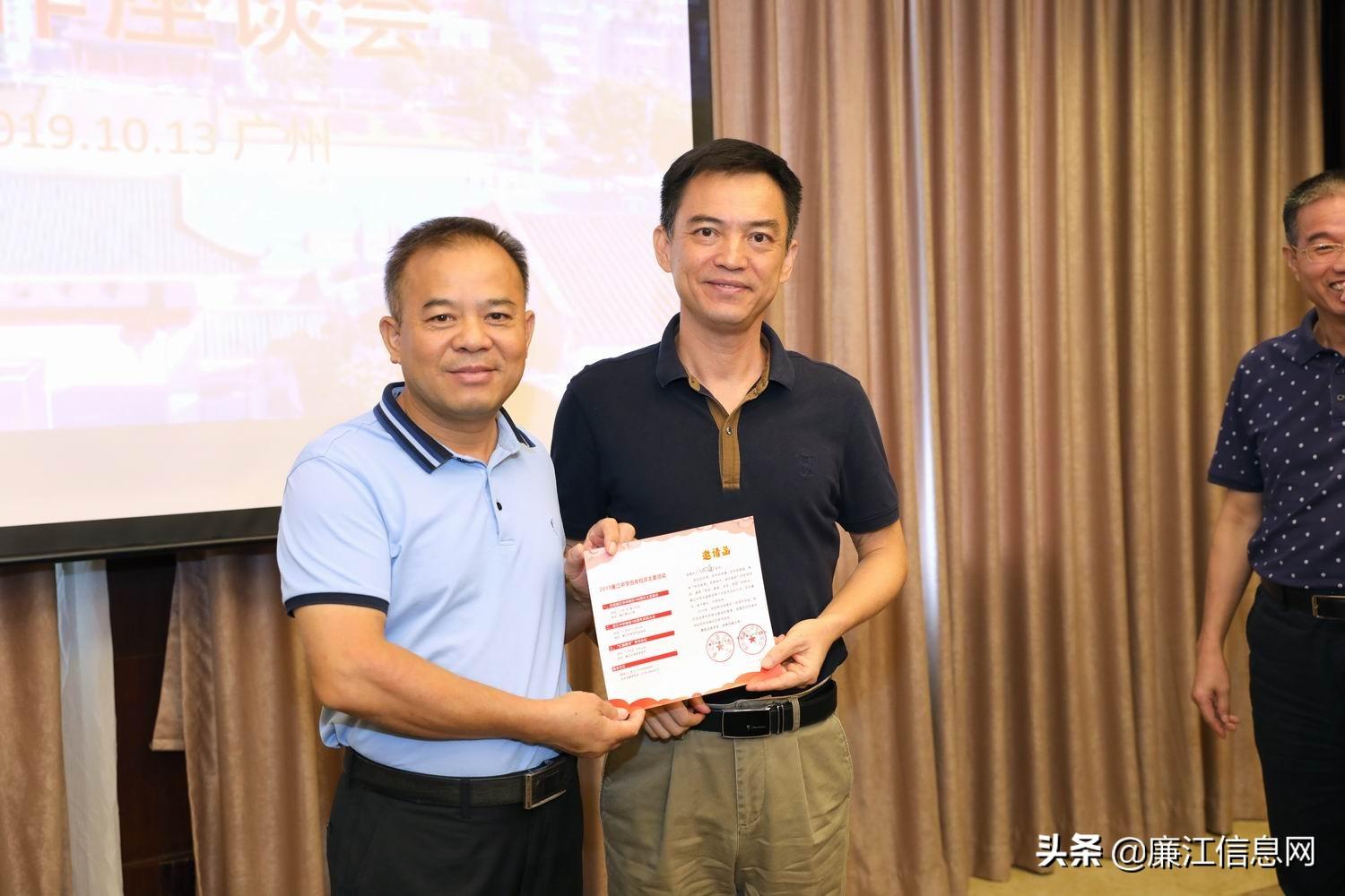 廉江中学70届校友潘胜华,深夜奔驰千里,代表本届同学赴省城参加百年校庆筹备工作座谈会,激动地从张旭校长手中接过校庆邀请函。
